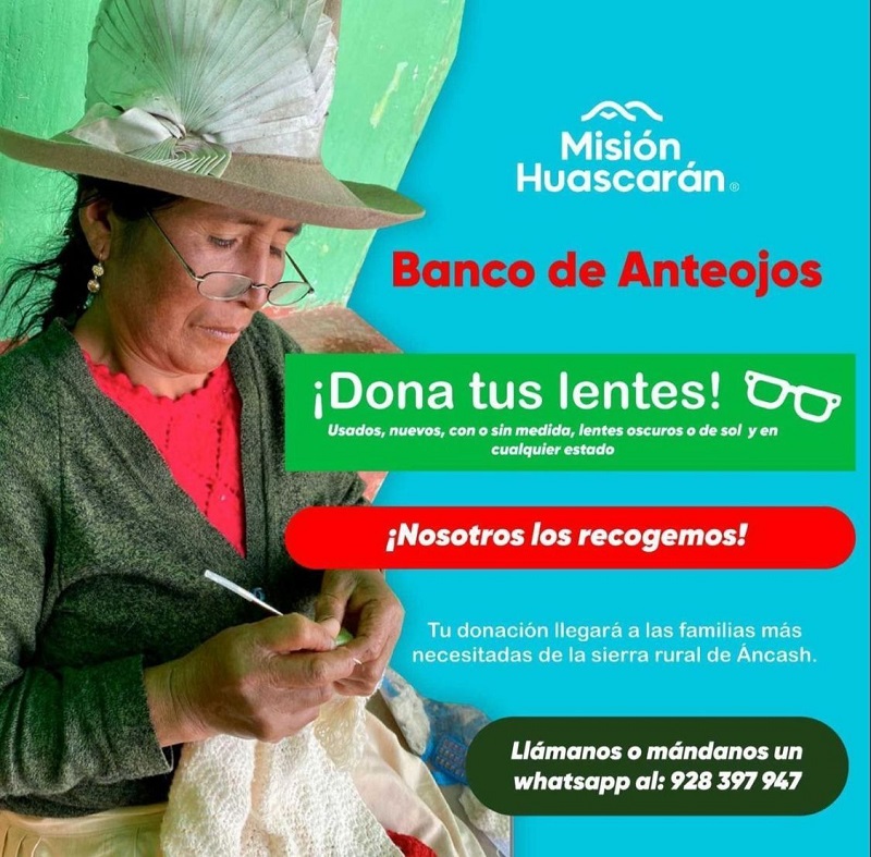 En esta oportunidad queremos invitarlo a colaborar con esta donación en Pro de Misión Huascarán. Dona tus lentes en desuso. Usados, nuevos, oscuros o de sol, con o sin medida.