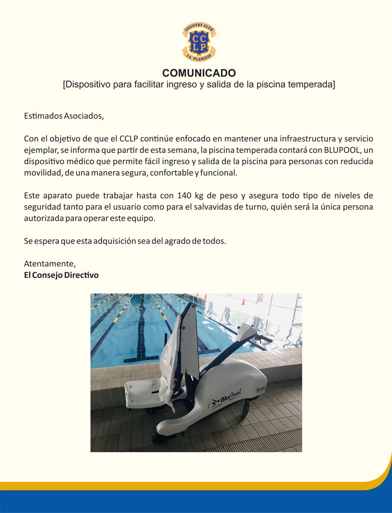 Comunicado | Dispositivo para facilitar ingreso y salida de la piscina temperada