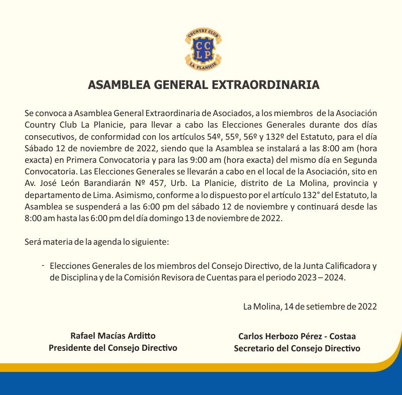 Comunicado | Asamblea General Extraordinaria - Elecciones Generales periodo 2023- 2024 Anterior Siguiente