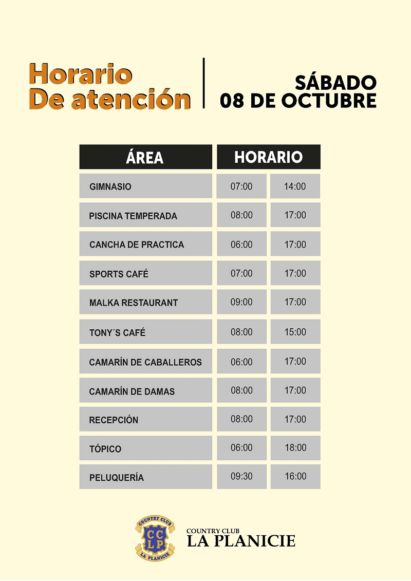 Horarios de atención | Sábado 8 de octubre
