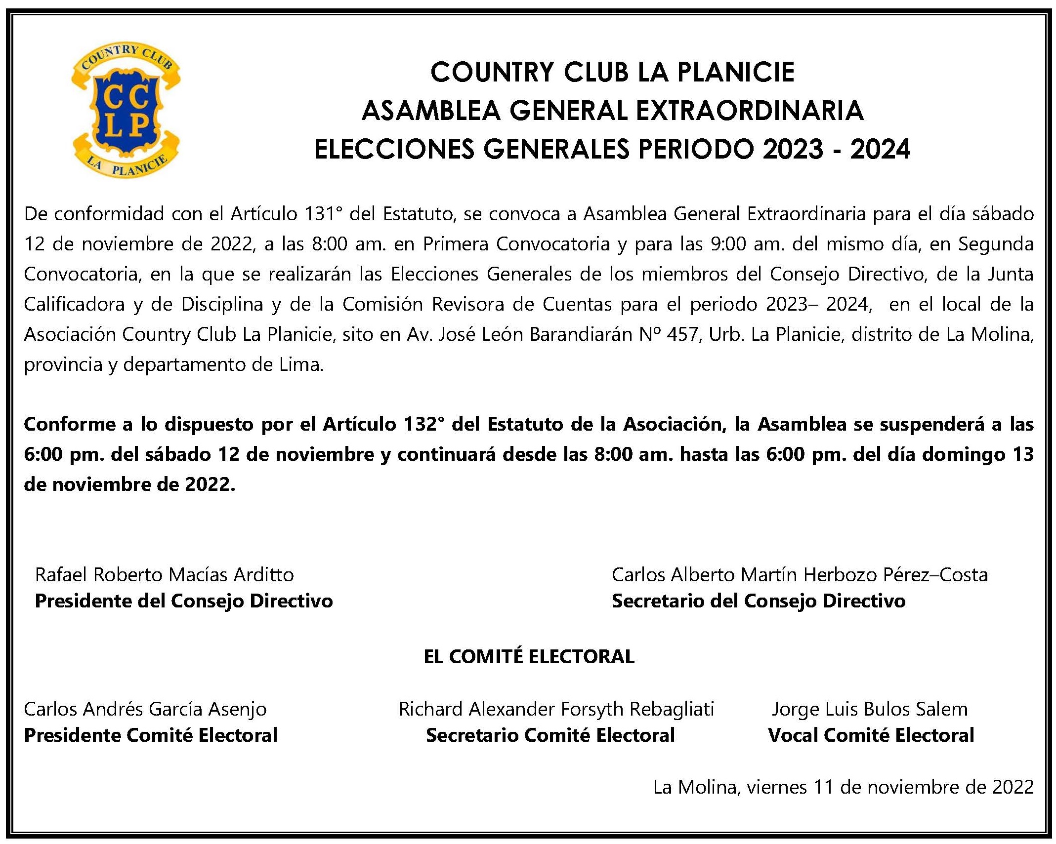 Comunicado | Asamblea General Extraordinaria - Elecciones Generales periodo 2023- 2024 Anterior Siguiente