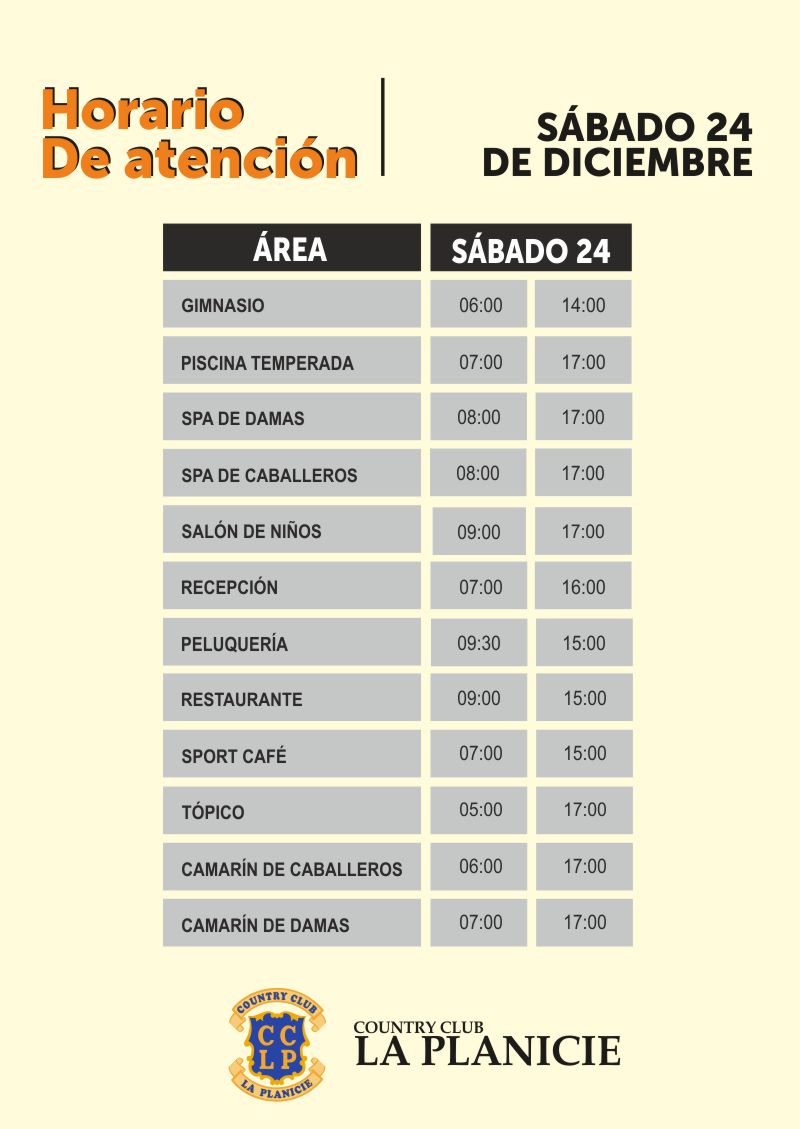 Horarios de atención | Sábado 24 de Diciembre