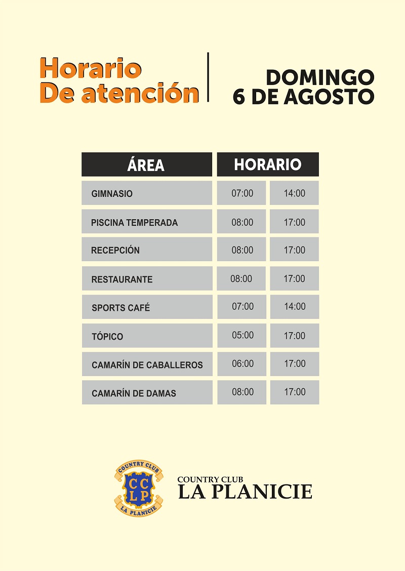 Comunicado | Horarios de atención - Domingo 6 de agosto