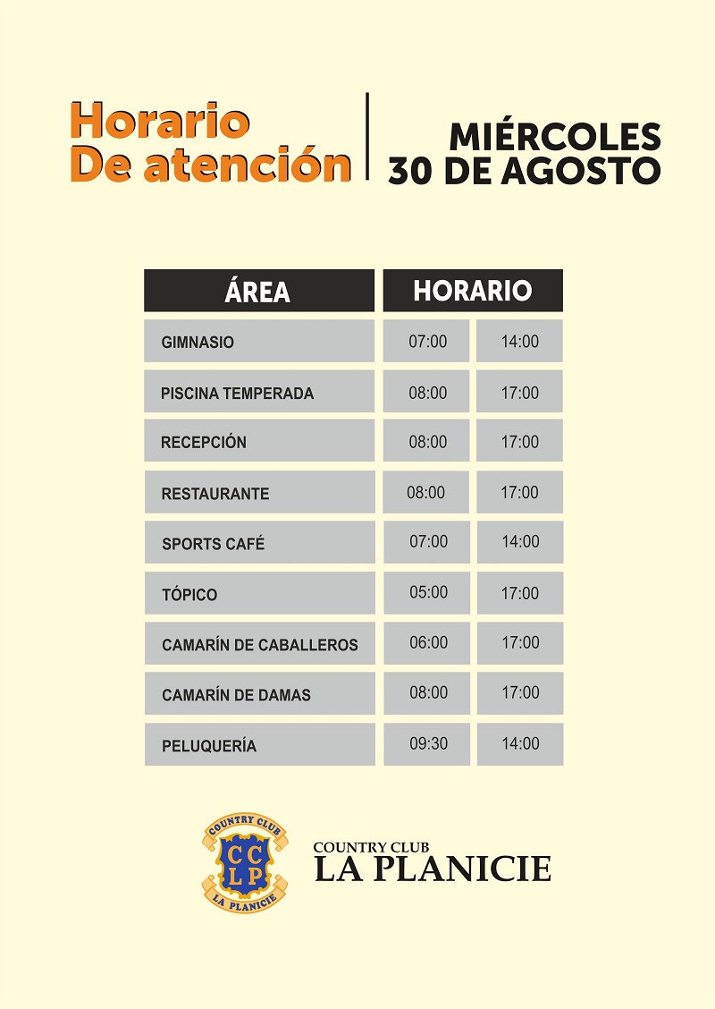 Comunicado | Horarios de atención - Miércoles 30 de agosto