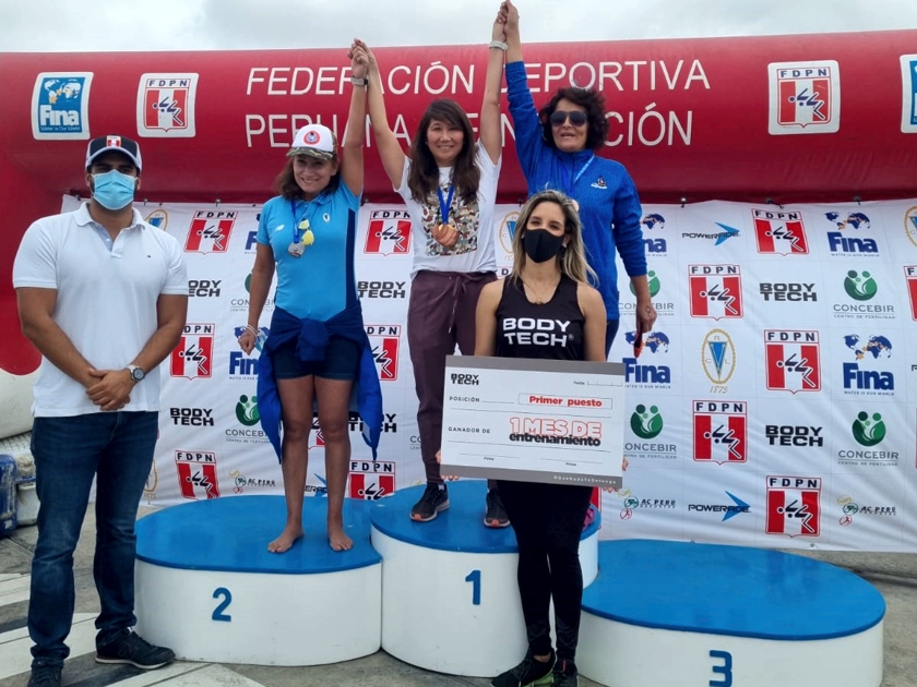 Diana Tamashiro del CCLP, se coronó como Campeona Nacional de la categoría 45-49 años, en la prueba de 3,000 mts Pro sin Aletas, estableciendo la marca de 50’35”69. Diana viene entrenando con Jose Luis Babilonia, Head Coach del equipo masters del CCLP.