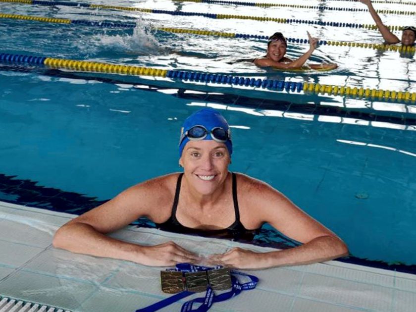 Otra gran actuación nos regaló Katherine Horny de la categoría 50-54 años, quien dejó el volley atrás, y volvió a las piscinas, y en su segunda competencia, se coronó campeona de los 50 mts espalda y subcampeona de los 50 y 100 mts libre.