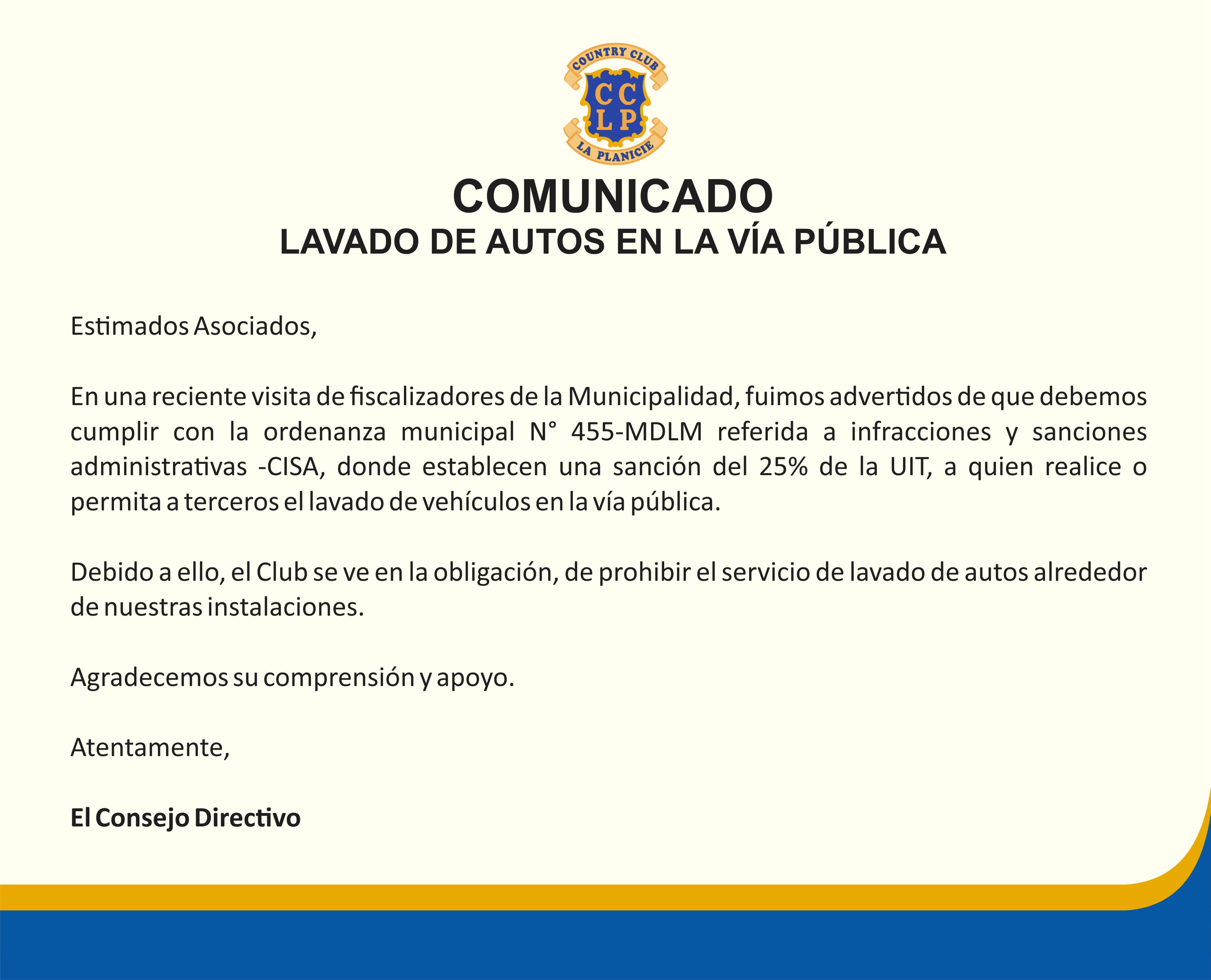 Comunicado | Lavado de autos en la vía pública
