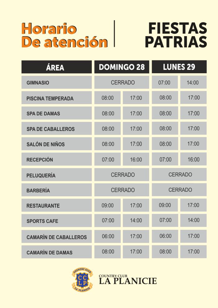 Horarios de atención | Fiestas Patrias | Domingo 28 y Lunes 29 de julio